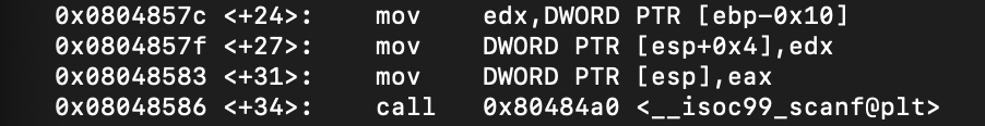passcode1은 ebp-0x10에 위치하는것을 알 수 있다.