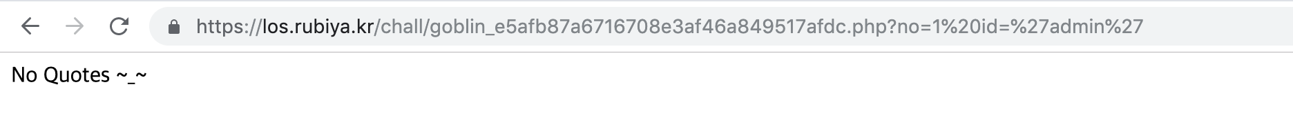 문제를 보면, id가 admin일때 문제가 풀리는것을 알 수 있다. 그래서 no=0처럼 임의의 값을 입력하고 뒤에 id='admin'이렇게 입력하면 6번째줄의 필터링에 의해 아래와같이 화면이 나오면서 '를 입력할 수 없게 된다.