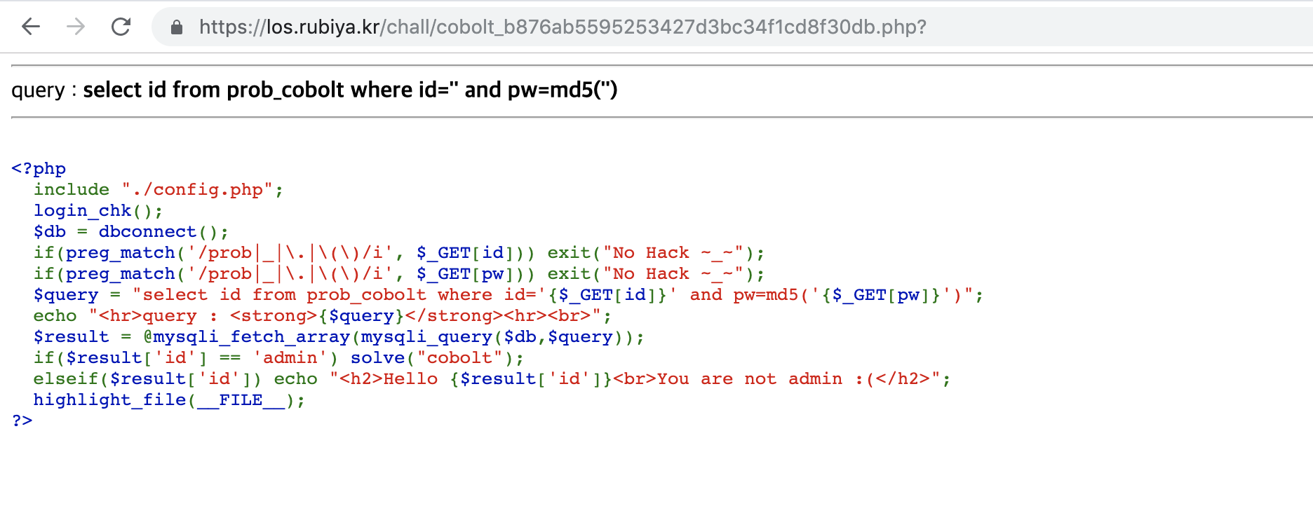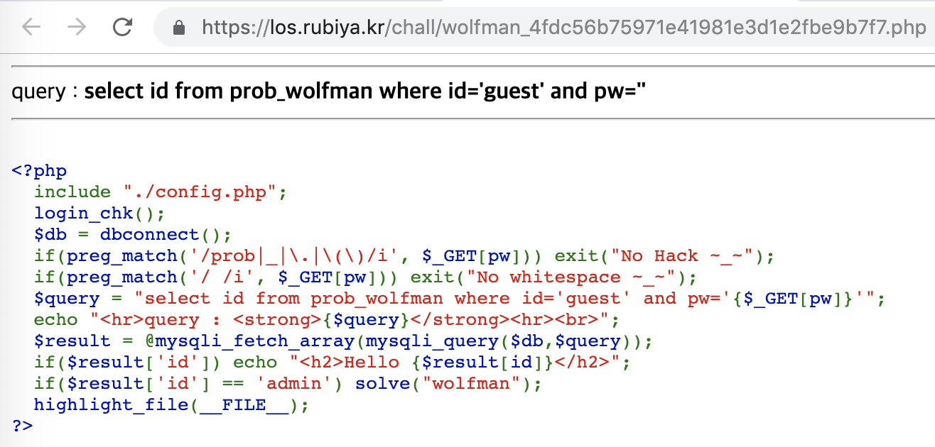 문제 풀이 처음에 문제를 보고 org문제와 비슷하다는 생각을 했다. org문제처럼 비밀번호를 직접 알아내야 문제가 풀리는 구조였기 때문이다. org에서는 직접 값들을 일일이 입력해보는 방식으로 문제를 풀었는데 이번에는 파이썬으로 비밀번호를 알아낼 수 있게 코드를 작성해보기로 했다. * 알고리즘 및 코드 설명 org문제와 마찬가지로 코드를 보면 어떤 값이 참이 될 때 Hello admin이 나오는 것을 확인할 수 있다. 그래서 그때와 마찬가지로 우리가 특정 값을 url로 넣었을 때 Hello admin이라는 글자가 페이지에 나온다면 그 조건을 만족하는 것이므로 비밀번호를 유추할 수 있다. 이 성질을 이용해 우리가 넣은 조건이 참인지 거짓인지 판단한다. 우선 length함수를 통해 비밀번호의 길이를 알아내고..